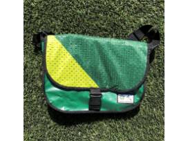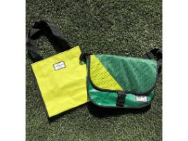 Get 2 Relan totes in this special package! This bag is made from recycled team vinyl and mesh stadium banners. Each bag is unique.