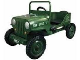 For the toddler in your life! Ducks Unlimited Vintage Jeep Pedal Car. Army style jeep with green body. For ages 3 to 5. Measures 32 ½" x 16 ¼" x 18 ¾".