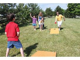hole game with boards and bags. Decorated by the 2nd