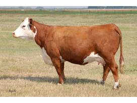 I have always wanted to have a Braxton female in our herd, and a few years back I was fortunate to have the opportunity to do so. Miss Braxton 94F's dam came from Ehlke Herefords in Montana and I could not be more pleased with her. Adding Leader 6994 just made perfect sense. She has all the right pieces in a great moderate package. She has extension throughout that just compliments her overall balance, femininity muscle pattern all while maintaining a very sound skeletal structure. 2019 MHA Field Day Class Winner AI bred to H RW All In 7165 ET on April 15, 2019. Pasture exposed to Harvie AD Harlen ET 199B. Preg check indicates safe to pasture exposure for March 1, 2020 calving.