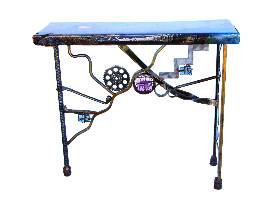 Recycled metal, Wood, and glass 32 x 36 x 12