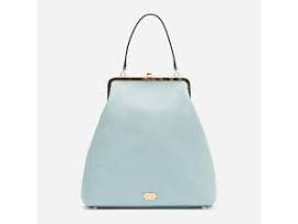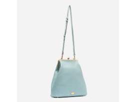 The "Caroline" handbag from Frances Valentine, the company created by Kate Spade, in light blue boarskin leather features an elegant silhouette and provides plenty of space for all of your day to day needs.