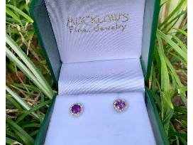 EARRINGS: 14K White Gold Mini Martini Style Earrings. With Amethyst and 0.8 CT TW round diamonds and G/H Clarity, SI clarity by Dabakarov.