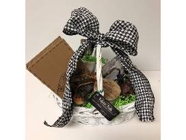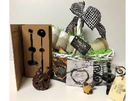 Enjoy this adorable basket filled with hom decor items, a candle, candle accessories, Kia Kaha bracelets, and more!