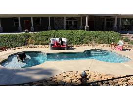 8 beautifully wooded and secured acres. Our dogs enjoy daily swims in our bone-shaped pool as well as playing on our agility equipment, and exercise and outside activity are stressed whether it is daycare or a boarding situation.