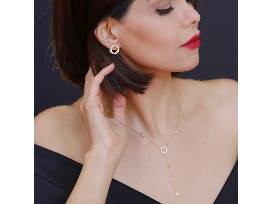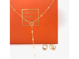 Classy lariat and earrings set. Fine craftsmanship and Italian design. Heavy gold plating over solid sterling silver and the highest quality zirconium stones (great alternative to diamonds). 18-inch chain with adjustable length. Very stylish lever back earrings, which look AMAZING on! Hypoallergenic. Exceptional quality and stunning packaging! Daring and glamorous, these fine jewels radiate timeless elegance and make you feel extra special.