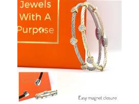 Elegant and stylish set of 2 cable bracelets. Fine craftsmanship and Italian design. Solid sterling silver stations on stainless steel cable, with highest quality zirconium stones (great alternative to diamonds). Sterling silver magnetic closure, engraved with JWAP logo. Hypoallergenic. Exceptional quality and stunning packaging! Daring and glamorous, these fine jewels radiate timeless elegance and make you feel extra special.