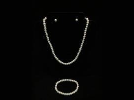 - Stainless Steel Freshwater Cultured Pearl Necklace, Bracelet, and 6.5MM Earrings Jewelry Set.