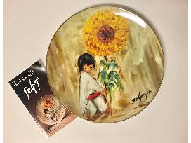 The solemn little "Sunflower Boy" is the last of the ten collector plates in DeGrazia's Children Series. This plate is a limited edition of 10,000 individually numbered, 10 1/4in. in diameter, and banded in gold on Fairmont Perfect Porcelain China.