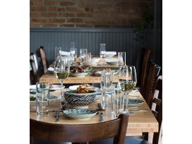 The menu is a playful and seasonal approach to New American cuisine, highlighting the chefs' connections to their respective Jewish and Japanese roots, and taking advantage of the great resources New York City has to offer, such as the wonderful produce at its greenmarkets and the wide range of specialty products available from the city's diverse population. Plates and meals are designed to be shared among diners in a casual and refined atmosphere, complemented by a beverage program that includes beer, wine, cocktails, and nonalcoholic drinks.