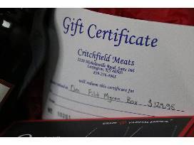 Plan a romantic night in with your sweetie! This package pairs a certificate from Critchfield Meats for a choice filet mignon box with a Stone Cellar Cabernet Sauvignon and two stemless wine glasses. Critchfield Meats' filet mignon is the ultimate in tenderness! No other cut of steak is so highly prized for "melt-in-your-mouth" goodness. Properly prepared, it can actually be cut with a fork. This delectable filet package contains eight 6oz choice filet mignon steaks, each carefully portion cut by hand to balance maximum flavor with dietary considerations (steaks valued at $129.95.)