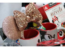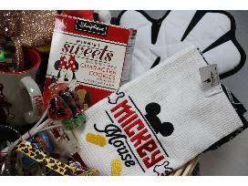 You can never be too old for your favorite Disney Character! Two Mickey and Minnie glasses, two park lanyards, two boxes of Disney Parks cookies, sold out rose gold Minnie ears, two Mickey mugs, Mickey suckers, Mickey keyholder, stuffed Mickey, set of two Mickey kitchen towels and Mickey hand oven mitt.