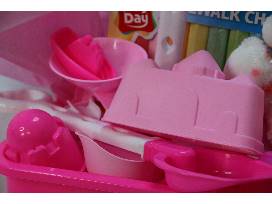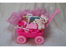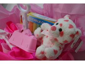 This little pink wagon contains all the ingredients for a summer of fun! Get outside and play with sand toys, sidwalk chalk and a plush bear.