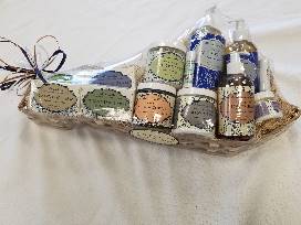 This home-spa in a Kentucky-shaped basket includes an assortment of Kentucky-made soaps and lotions from goats milk.