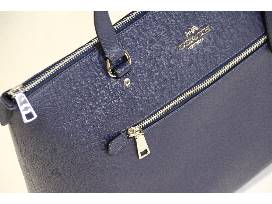 This navy Coach tote is the essential carryall! It is generously sized to hold a 13" laptop, wallet, makeup bag, a change of shoes and more, making it the perfect choice for everyday or overnight. Featuring long slender straps that sit perfectly on the shoulder, the tote is crafted in scratch-resistant polished pebble leather and finished with a secure zip-top closure.