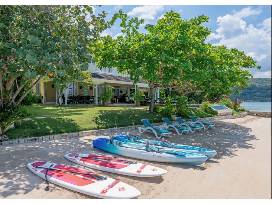 Seven days in a five bedroom luxury villa. Elsewhere by the Sea is a beautiful beachfront villa in a gated community. The property features an infinity pool, private beach, tennis courts and workout facility. Five bedrooms, sleeps up to eight adults and four children. For your entertainment, Elsewhere is equipped with snorkeling equipment, tennis rackets and two kayaks for the lagoon.