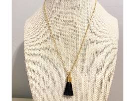 - 16" Black Leather Tassel charm necklace (14k gold filled chain)