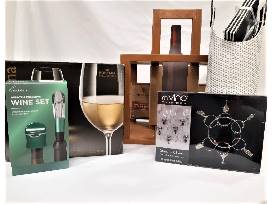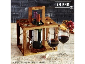 - Wooden Wine Bottle Caddy by American Vintage Style. Holds two bottles and four wine glasses