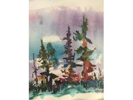 Brighten a room with this watercolor of three trees painted and signed by local artist Pat Kaufman. Matted and framed size is 18" h x 22" w.