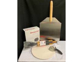 This Nexgrill 5-burner gas grill with stainless steel side burner offers plenty of space for your grilling needs. Package includes Kitchen Aid cover, 3 piece grill tools, and a 4 piece pizza set including pizza stone & server, cutter, and pizza peel.