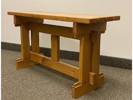 Handcrafted by Wood Artist Dwain Naragon, this 20" tall x 36 3/4 " long x 12" deep white oak bench is truly a one of a kind piece.