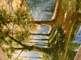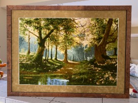 This hand-knotted Persian rug was artistically cut to offer a realistic three dimensional effect. Handmade in Iran and professionally framed, this tapestry wall hanging is ready to adorn a new home.
