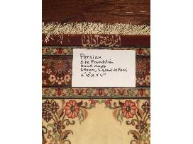 This treasure is made of wool on a silk base. Handmade in the city of Ghom, Iran and signed. Rugs of this quality are handed down from generation to generation - go home with a new family heirloom!