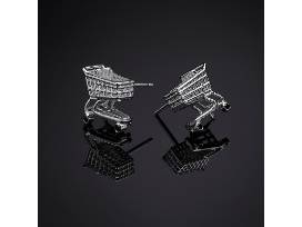 1Deanna McLaughlin: Cartrageous Post earrings with 1.5 mm Diamond Wheels, 2019, sterling silver, black diamonds, 1.29" x 1.52" x 1.24"