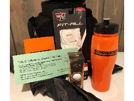 Schneider Branded Items: golf umbrella, golf towel, golf balls & tees, waterbottle, can coozie & cooler