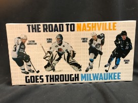 Milwaukee Admirals bobblehead set featuring Roman Josi autographed, Pekka Rinne autographed, Viktor Arvidsson autographed and Pontus Aberg (not signed)