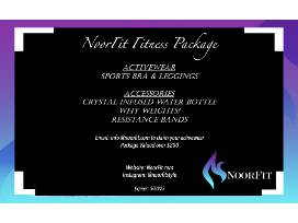 Get in the best shape of your life with this NoorFit fitness package! You'll receive a sports bra and leggings, a crystal infused water bottle, Why Weights, resistance bands, and a 6 month membership card to TruFusion STL.