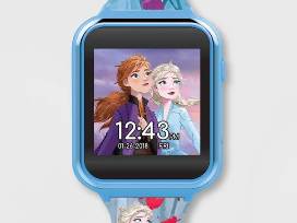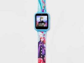 Frozen 2 iTime Kids' Smart Watch in multi-printed rubber strap, square blue case; Functions Include: 3 wallpapers, 10 clock faces, step counter, alarm, timer, stopwatch, games, selfie photo & video camera, voice recorder & calculator.