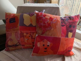 This set of pillows features artwork by all students in Class 4-2. These linen pillows measure 20" square.