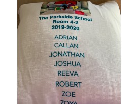 Special thanks to Ms. Casas for facilitating this art project with the students, and to Judy Frangie-Camareno for profiding the beautiful illustration found on the back of each pillow with the student names.