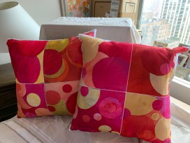 This set of pillows features artwork by all students in Class 3-3. These linen pillows measure 20" square.