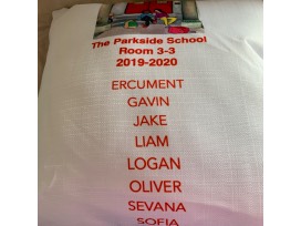 Special thanks to Ms. Casas for facilitating this art project with the students, and to Judy Frangie-Camareno for profiding the beautiful illustration found on the back of each pillow with the student names.