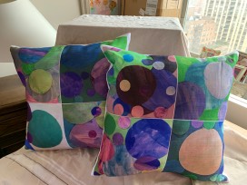 This set of pillows features artwork by all students in Class 3-4. These linen pillows measure 20" square.