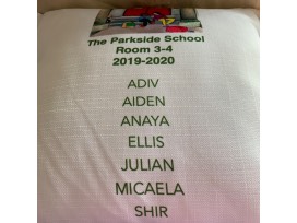 Special thanks to Ms. Casas for facilitating this art project with the students, and to Judy Frangie-Camareno for profiding the beautiful illustration found on the back of each pillow with the student names.