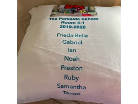Special thanks to Ms. Casas for facilitating this art project with the students, and to Judy Frangie-Camareno for profiding the beautiful illustration found on the back of each pillow with the student names.