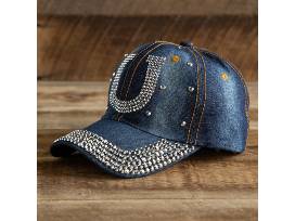 Bling, Bling - Country Style! This Horse Shoe Bling Hat is made of a dark denim with shimmering rhinestones in the shape of a horseshoe on the front, and outlining the bill.