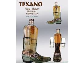 A very smooth Reposado tequila in the form of a western boot, with two shot glasses. Aged in oak barrels for six months. Shaped like a boot, the bottle comes with two shot glasses which are held close to the top of the bottle, almost like spurs on a cowboy boot.