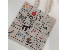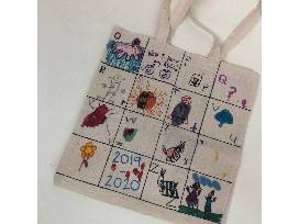 Colorful decorated tote bag made with love by Ms. Yi's Class!