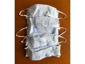 0This stylish handmade face mask features a lovely due-date pattern.