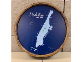 Our 1950's style maps look fantastic on these vintage-inspired barrel ends! The barrel ends are 21" round by 3.5" deep. They will look great in your home or cabin, and they make great gifts!