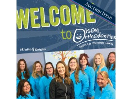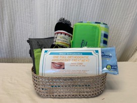 This basket generously donated by Olson Orthodontics includes a full orthodontic adolescent treatment covering all appointments, appliances, one set of retainers, and a year of follow up visits. You will also receive a fun basket of goodies including a blanket, travel cup, lunch bag, face covering/gator, and knit hat!