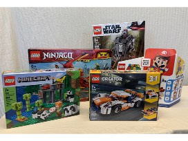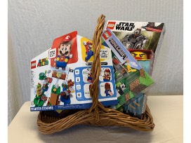 Your young builder will be entertained for hours with this awesome lego basket! Items contain: Super Mario Starter Course Lego set, The Panda Nursery Minecraft Lego Set, AT-ST Raider Star Wars Lego set, Sunset Track Racer Creator Lego Set, and the Ninjago Kai Fighter Lego Set.