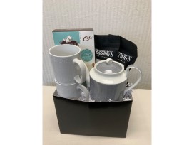 Invite a good friend over for conversation over a cupcake and a cup of tea. This gourmet basket generously donated by Fezziwigs contains a teapot, 2 mugs, salted caramel cupcake mix, and 2 bags of tea - Cozy Cabin green tea and Decadent black tea.
