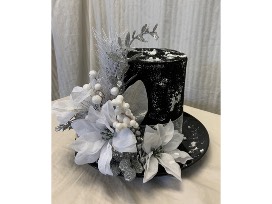 This snowman hat decoration is too fancy for Frosty, but it will be a beautiful addition to your Christmas and Winter decorations. Handmade by our favorite school librarian, Mrs. Shellie Brown.