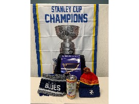 The winner of this basket will be cozy, warm, and stylish as they show their support for the St. Louis Blues! You will receive a Stanley Cup flag, Blues scarf, Blues reverse retro youth sized stocking hat, fuzzy throw blanket, and a custom epoxy St. Louis Blues travel mug. Basket also includes a gift certificate for another customized epoxy mug with your choice of design/logo/saying (not limited to St. Louis Blues).