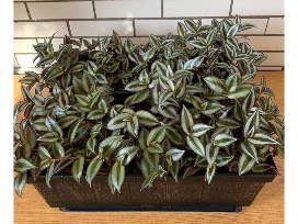 Homegrown in St. Clare School, these two planters of Wandering Jew vines are perfect for any plant lover. They require light watering once a week and a sunny window. After first frost, they can live outside in a part-sun area and are great for groundcover. Courtesy of Jenny Jones.